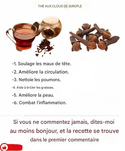 L’une des façons les plus réconfortantes de profiter du pouvoir guérisseur des clous de girofle est à travers le thé au clou de girofle. Cette infusion apaisante n’est pas seulement agréable, elle offre aussi une large gamme de bienfaits naturels pour la santé. Ci-dessous, nous allons explorer ses principaux avantages et partager des recettes maison simples que vous pouvez essayer dès aujourd’hui.